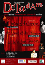 Voilà, la 1ère édition du Festival de théâtre de la MJC de Claix «DETADAM» s’est achevée… et laisse à tous les participants et bénévoles une grande envie de recommencer et recommencer encore l’année prochaine et toutes les autres années ce temps fort de partage, d’amitié, d’échanges artistiques.