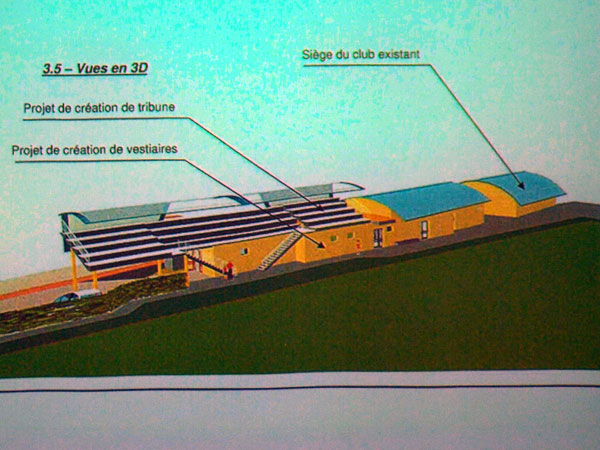 - Le projet de vestiaires et d’une tribune de 300 places pour le stade de football de la Bâtie. On en est encore au stade de l’avant-projet pour monter les dossiers de subventions.