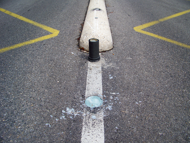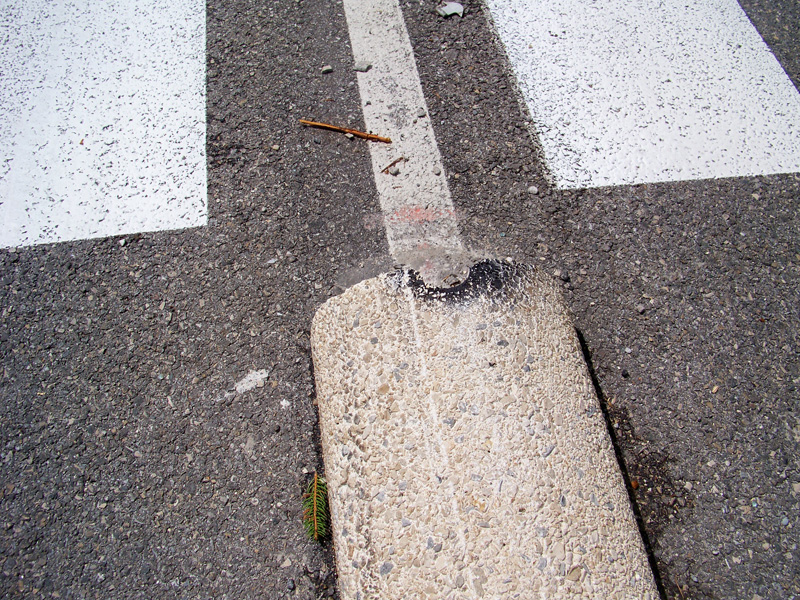 Et là, nous avons vu apparaître un nouveau phénomène : des dégradations répétées contre cet équipement. Toutes les quilles ont rapidement été cassées. Plus tard un bloc séparateur en béton a été cassé.