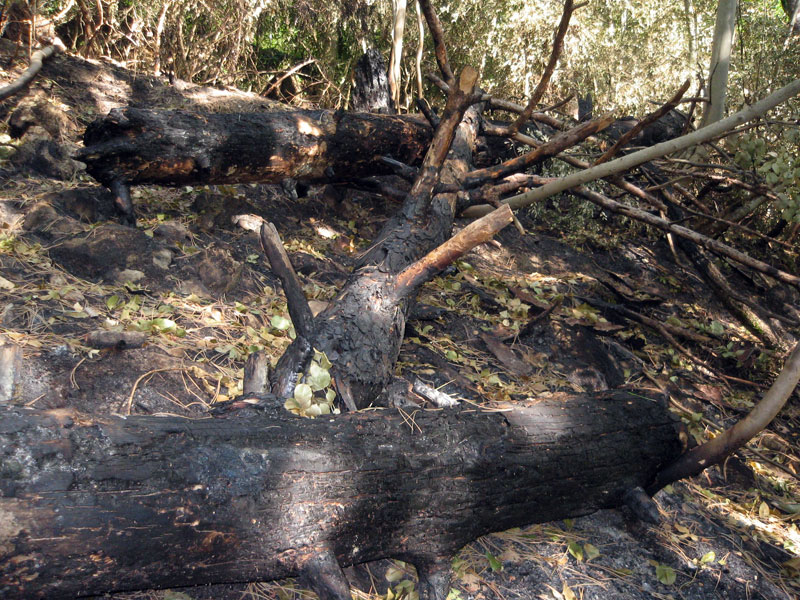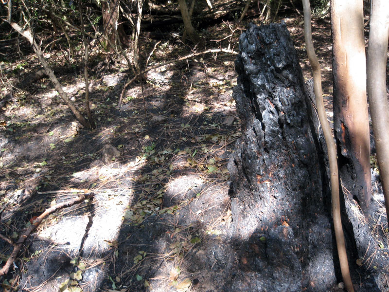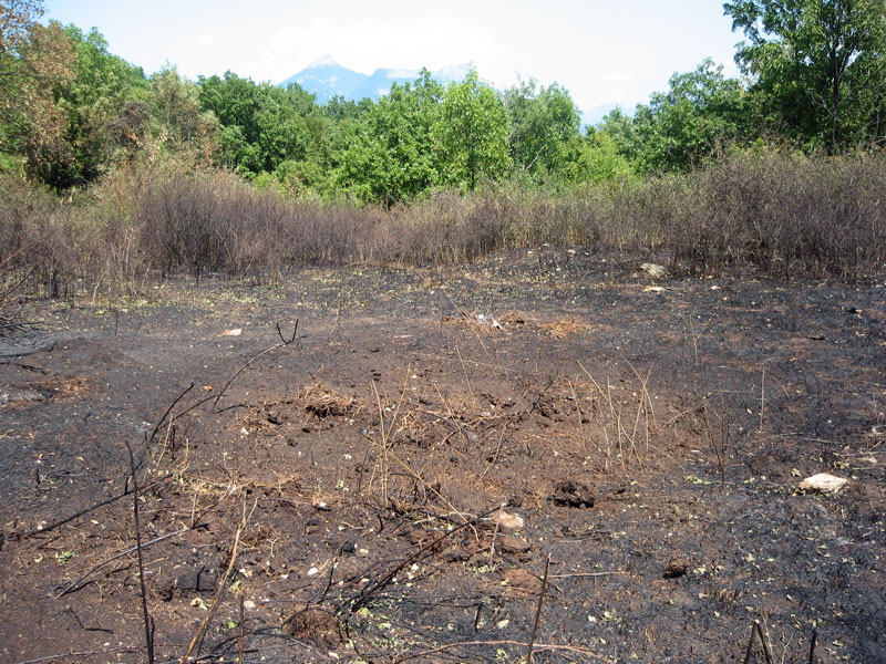 Autres photos de ce qui s’est passé dans la nuit du samedi 11 au dimanche 12 juillet 2009 dans le bois du Pertuis, le long du chemin qui va de l’école de musique au lotissement Bellevue. Impossible qu’un feu démarre tout seul, la nuit, au milieu des bois ! A cet endroit, il y a également des traces d’un feu un peu moins récent.