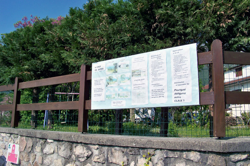 Résultat, nous ne savons toujours pas pourquoi les constructions prévues à la Croix Blanche comportent un niveau de plus que ce qu’autorise le PLU. Nous ne sommes pas les seuls dans cette situation puisque les riverains ne sont pas plus entendus que Claix Naturellement. A tel point que l’un d’eux a affiché ses doléances sur un panneau bien en vue de la route.