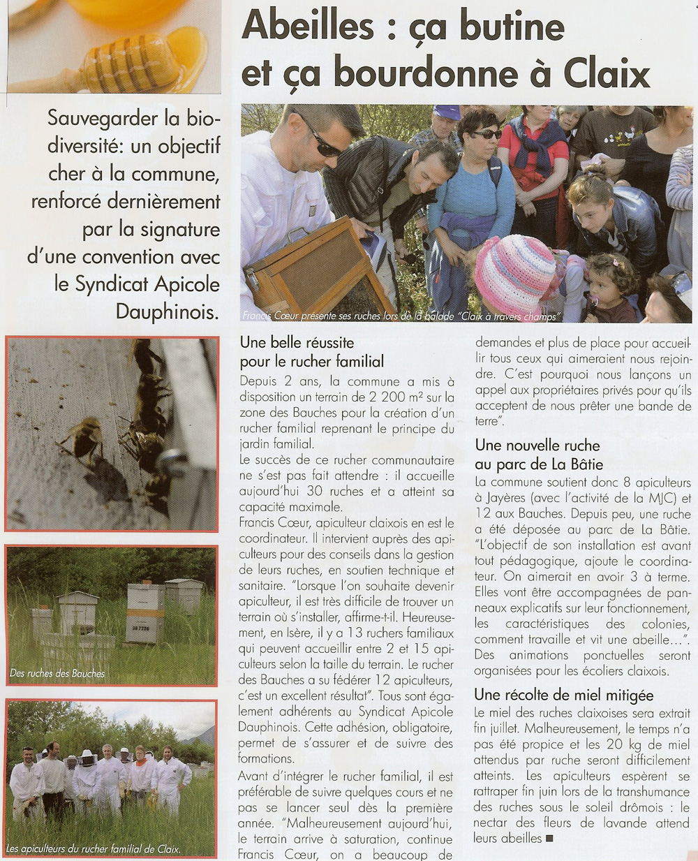 En savoir plus sur l’apiculture à Claix : le rucher familial des Bauches, Convention avec le Syndicat Apicole Dauphinois.