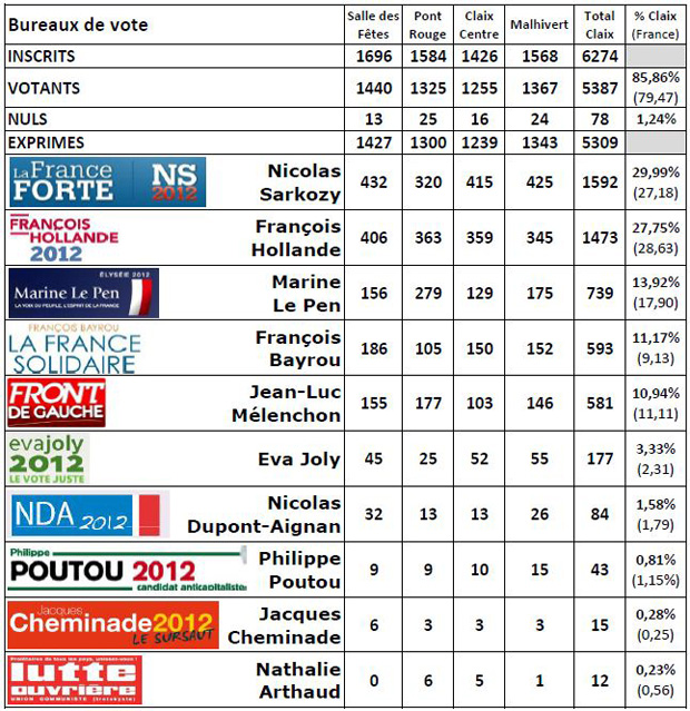 Sophie Hérault sur 23 avril 2012 à 7 h 56 min Je suis impressionnée et ravie par le taux de participation des Claixois 🙂