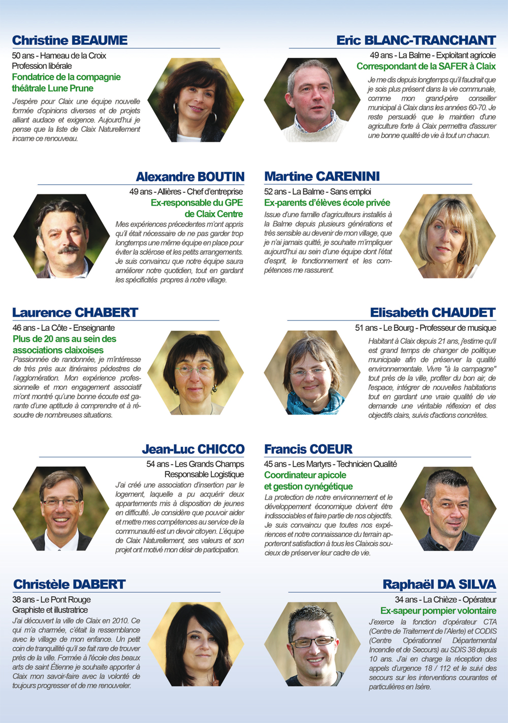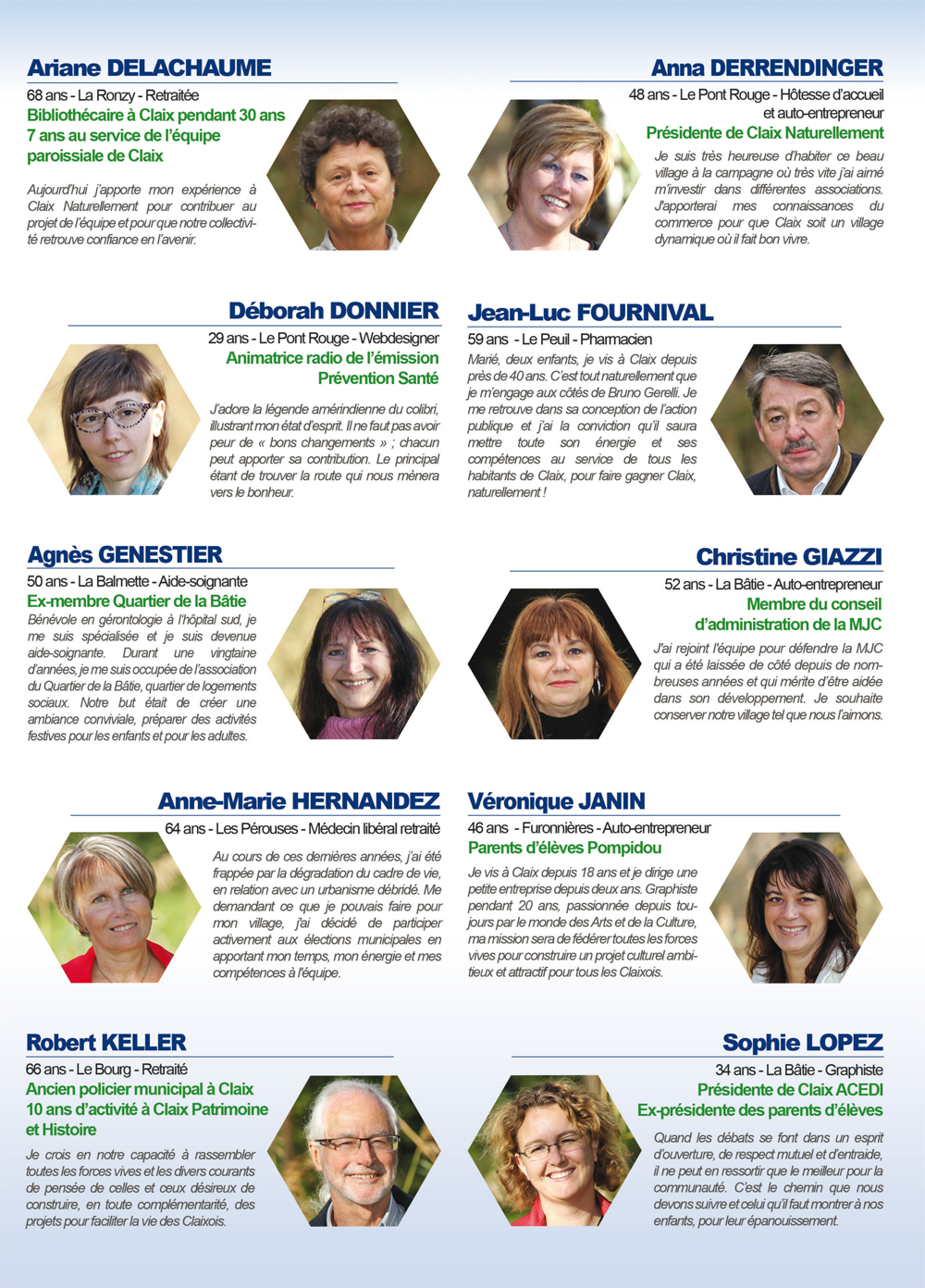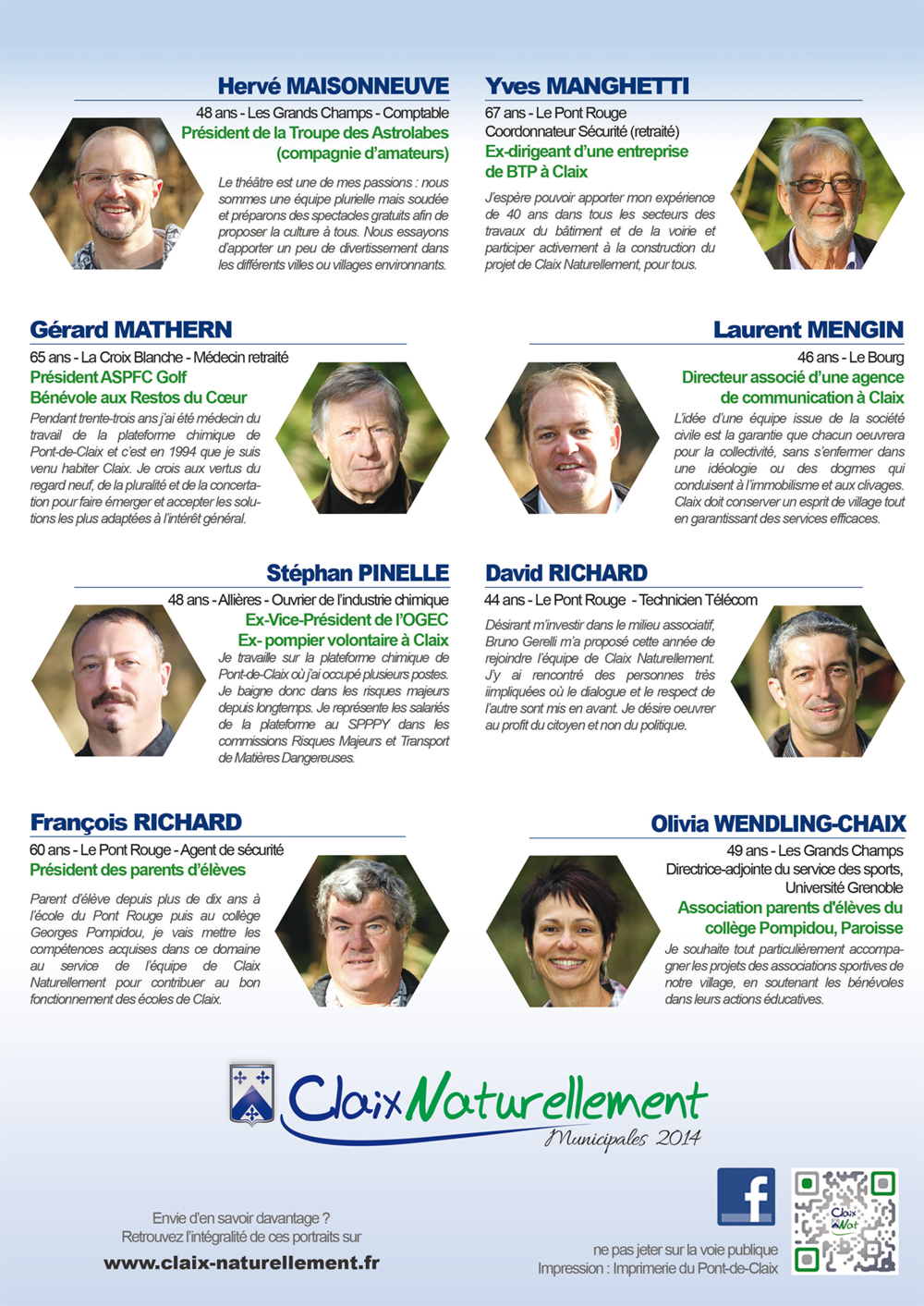 Aujourd’hui c’est le trombinoscope papier que nous allons distribuer à tous les Claixois que nous vous présentons :